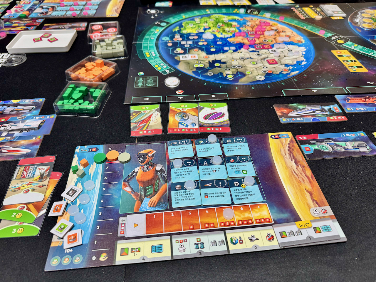 다른 언어 판본은 게임보드가 영어로 나오는데, 한국어판은 보드도 한국어로 나온다고 합니다. 카드 효과에서 보드의 행성 이름들을 자주 참조하기 때문에 굉장히 좋은 선택이었다고 보네요.