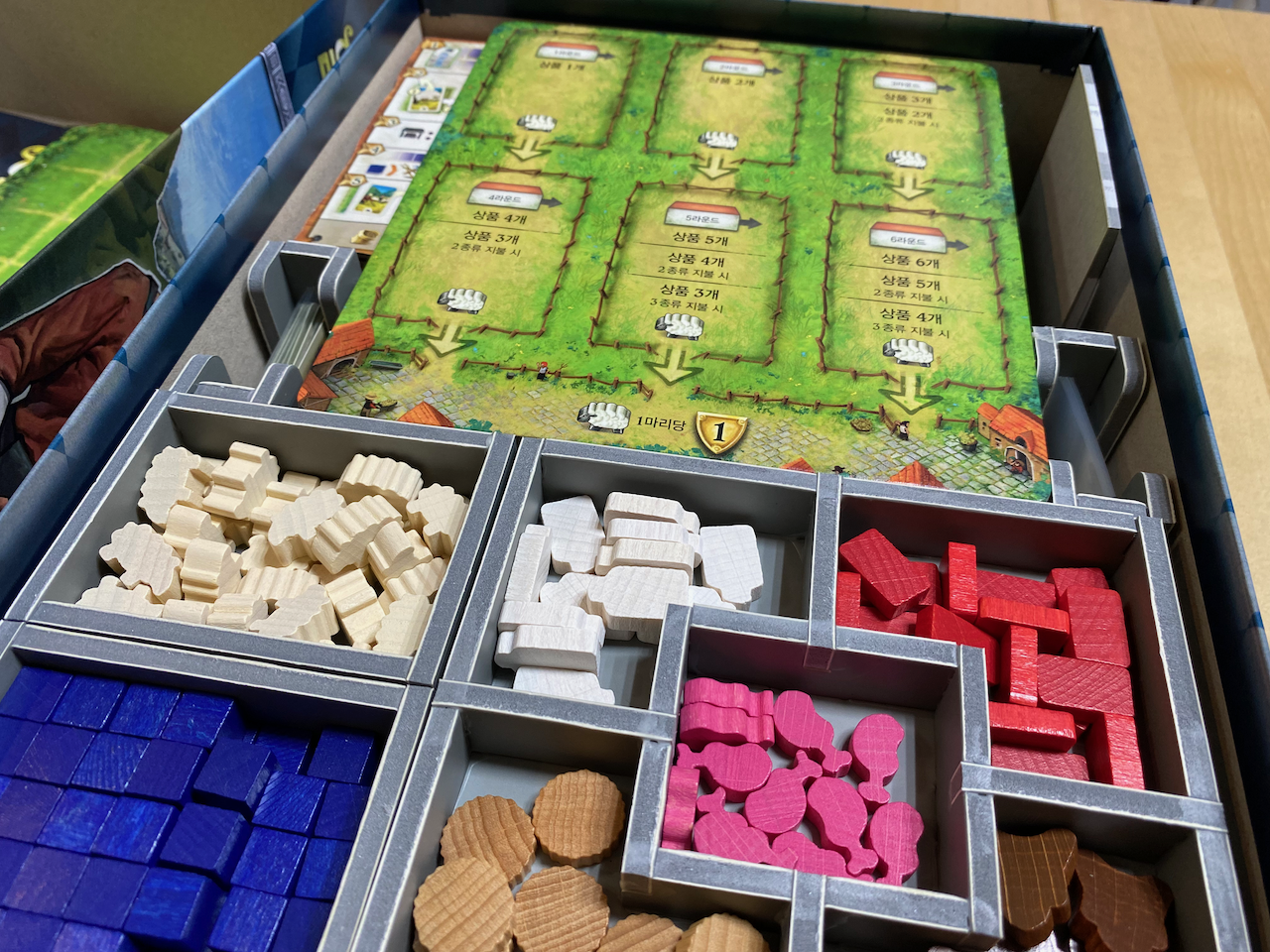 모든 게임 구성물을 트레이에 담은 모습입니다.